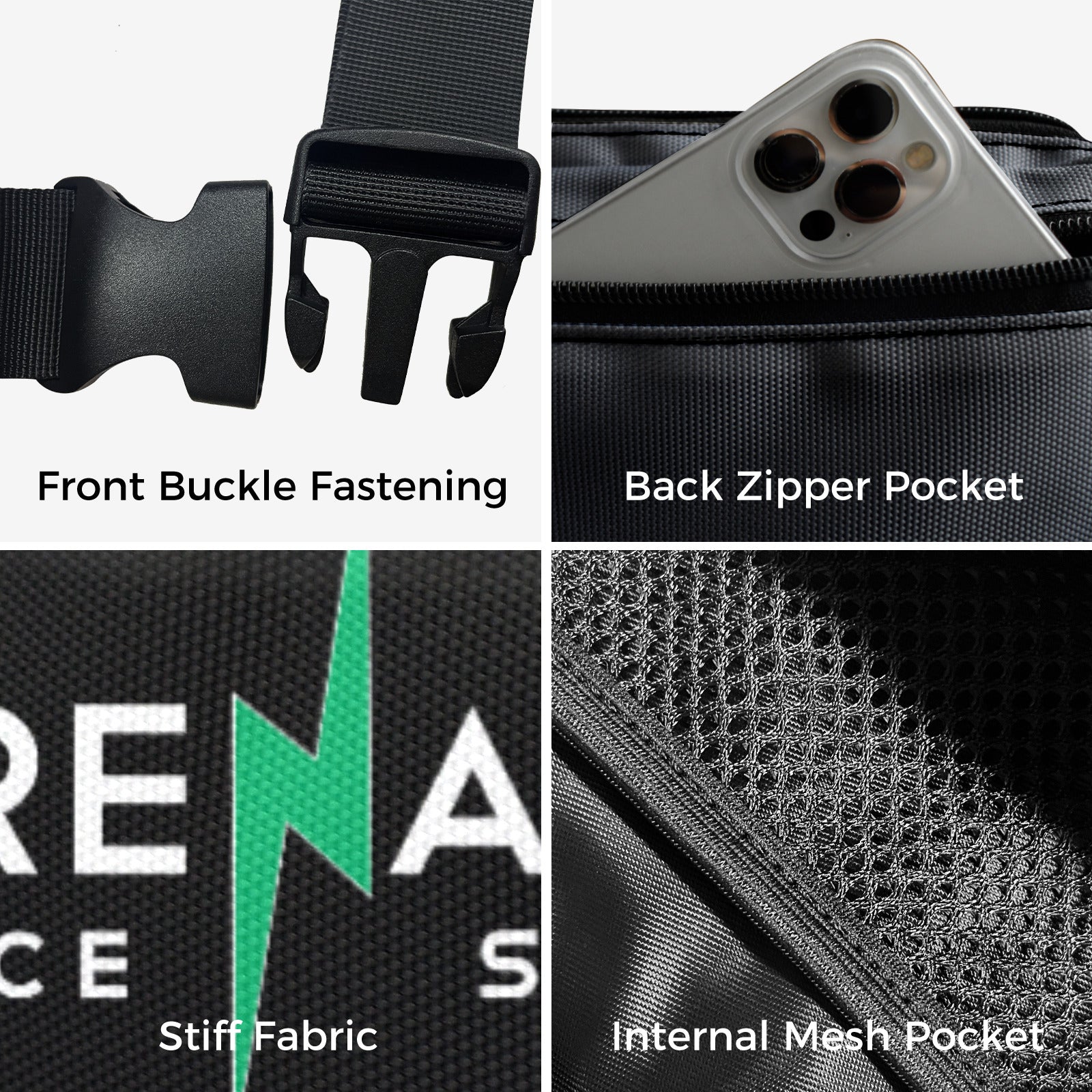 • Adjustable waist belt with plastic buckle for comfortable fit.
